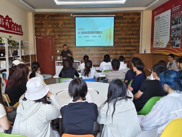 与郑建华员工亲切朴实的生活化分享形成鲜明对比,贾鑫员工的演讲则充分展现了其所在领域的专业深度与前沿视野。他以“对齐能力:AI与创业背后的关键支撑”为主题展开分享,认为“对齐”的核心在于“方向一致、信息同步、目标同频”。他以十余年创业经验为基础,结合对AI应用深入理解,为同学们剖析了一个创业者如何通过“识别价值—创造价值—传递价值—交付价值”的四步路径,不断实现人与人、团队、客户、机器之间的有效对齐,从而推动产品落地、企业成长。