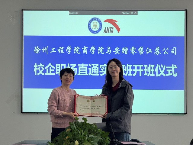安踏零售江苏公司负责人徐吉发表展望致辞,希望双方强化沟通联系,共同探索校企合作新模式,积极探索应用型人才培养新路径。最后,党委副书记靖楠作总结讲话,她从教育发展与行业需求的宏观视角,对校企合作的长效开展提出愿景并寄予期望,希望以实践班为起点,构建“人才共育、资源共享、发展共赢”的校企合作新格局,提升人才培养质量,促进员工高质量就业。