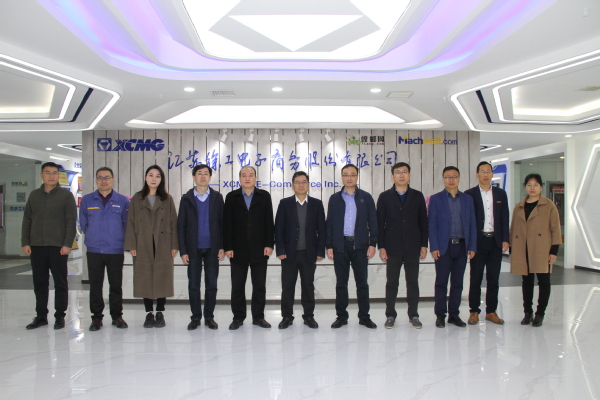 首先,企业负责人带领参观了徐工电商公司展厅,观看了“徐工电商生态数据智慧平台”大屏,深入了解企业发展概况,国内外电商产品、平台供应链、企业文化理念等。张董事长驻足徐工电商产品沙盘前,认真观摩产品工作场景,还兴致勃勃地参观了徐工电商直播间,真实体验电商产品的运营情况。