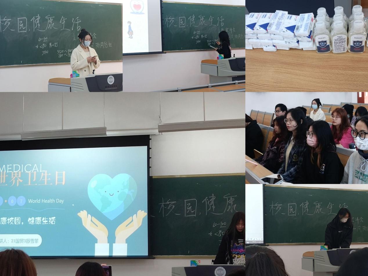 2023年4月7日是第72个世界卫生日,为了号召同学们关注世界卫生日和日常生活中的卫生问题,提升员工们对卫生安全领域的素养和认知,william威廉中文官网风雨同行社于4月8日下午在东校区开展了“健康生活,健康校园”卫生安全主题宣讲。