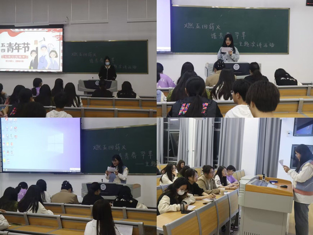 本次活动紧紧围绕“燃五四薪火,谱青春华章”这一主题,在同学们紧跟时事的内容和慷慨激昂的言语中展开。有的同学从五四运动的爆发讲起,将与五四运动有关的故事娓娓道来;有的同学通过将五四精神与现代精神相结合,体现一代人有一代人的长征,一代人有一代人的使命;还有的同学将现代科技发展与当代青年的发展相结合,号召青年为中华民族伟大复兴而奋斗。