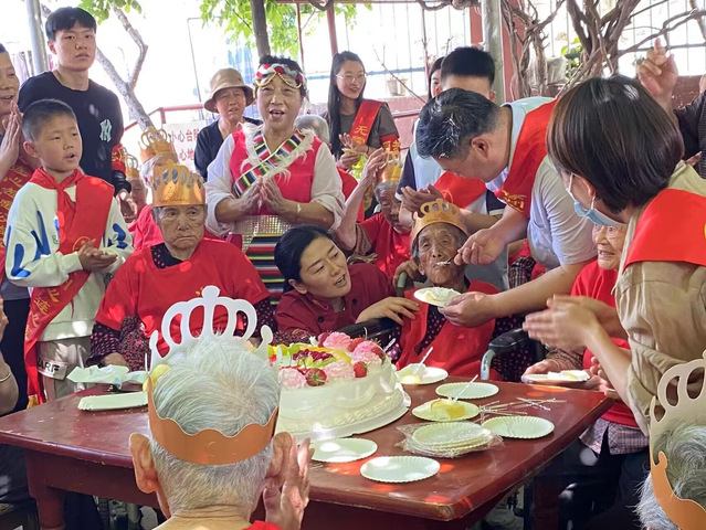 上午八点多,志愿者们到达敬老院门口,协助十多名理发师为老人们理发,80多岁的张凤兰老人对自己的新发型特别满意,一再表达感谢。随后,志愿者们及徐州孝老爱心艺术团合唱《愿天下老人都安康》,将祝福送给老人们。接着,志愿者们将心连心志愿公益服务中心准备的面包、牛奶送到每位老人手里,陪老人们在院子里聊天,叮嘱老人们要注意身体健康,让老人们感受到晚辈们的关爱,也感受到来自社会大家庭的温暖。最后,志愿者们给每位老人都带上皇冠,切开准备好的母亲节大蛋糕,将蛋糕细心地喂到老人嘴里。