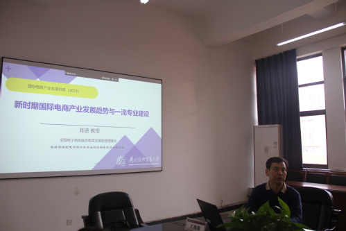 在本次讲座中,陈进教授围绕新时期国际电商产业发展趋势总体趋势,高校电商专业建设途径、跨境电商产业发展的人才要求、跨境电商产教融合发展模式等方面进行深入而又细致地前瞻性阐述,深化了师生对国际电商产业发展模式的内涵理解,拓宽了师生对专业研究的视野。