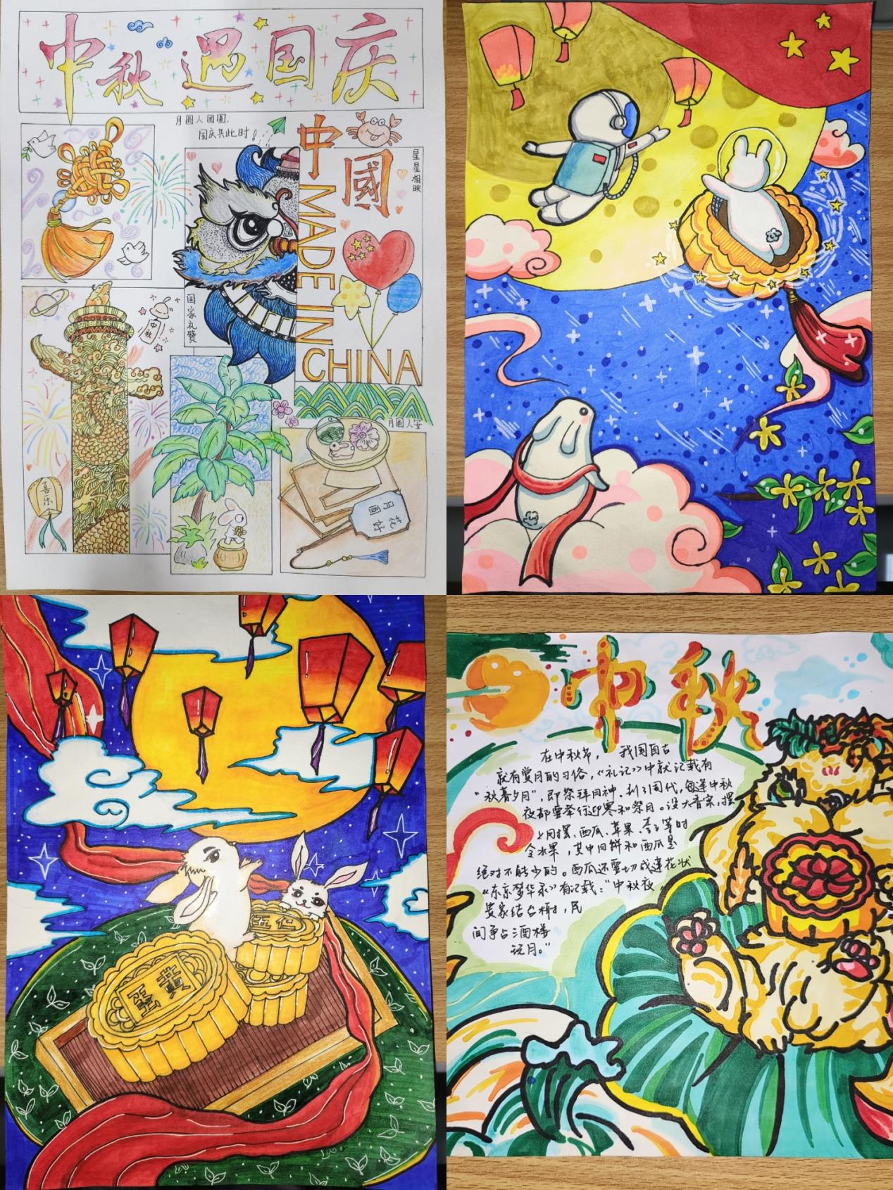 参赛选手们精心设计手抄报版面,创作出了一幅幅内容丰富、形式多样的作品,展现出了同学们出色的创意和手工技巧。作品的色彩搭配和字体设计,使传达信息更加清晰易懂、赏心悦目。好时节,愿得年年,常见中秋月。通过丰富多彩的活动形式,营造了欢乐祥和的节日氛围,提高了同学们的参与度和满意度,增强了同学们对校园文化的认同感和归属感。