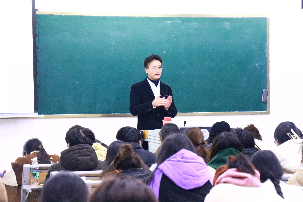 于容海员工首先分享了自己大学期间的学习经历、参与竞赛情况以及毕业季求职过程。他以“勇气”“规划”和“努力”为关键词,结合在参加“创青春”江苏省老员工创业大赛和国际马拉松赛志愿服务期间的经历,鼓励同学们大学在校期间一定要勇于尝试、奋进拼搏。随后,他着重分享了个人选调生备考的相关经历。他从选调生的报名要求、备考过程和考试内容等方面详细讲解,以自身大四期间“四次公考,三次进面,两次上岸”的事例提示同学们:在校期间一定要在学好专业知识的基础上,敢于追求梦想、大胆尝试,积极参加校内各类社会实践活动,以便更从容地应对毕业季的各种挑战。于容海还分享了今年2月以来在徐州市文旅集团挂职的感悟。他深切地希望:旅游管理专业员工在校期间一定要学深学透专业课程,增强专业技术能力;开阔专业视野,全方位认识旅游管理专业员工的就业方向,严格要求自己,努力提升个人综合素质,以便在就业时有更多的选择。于容海员工的分享激情四溢,他以幽默的谈吐,生动的事例,感染了在座的员工,让同学们受益匪浅。