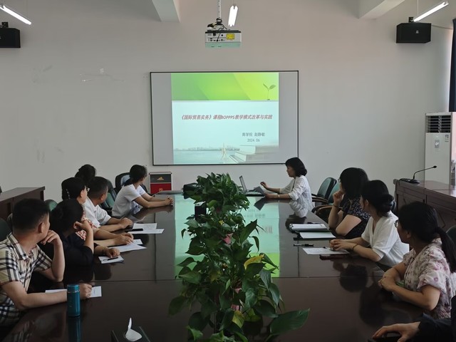 随后,孙洁副教授汇报了参与式教学方法改革研究项目“《外贸英语函电》课程参与式教学方法改革研究”的进展情况,并结合其本人在教学方法改革过程中的探索与实践进行了经验分享,就课程建设思路及在实施过程中存在的问题与在座教师进行了交流。