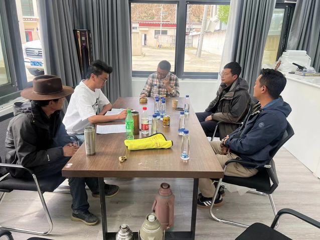 朱颜敏员工(右二)在藏区村委会验收村级便民服务中心