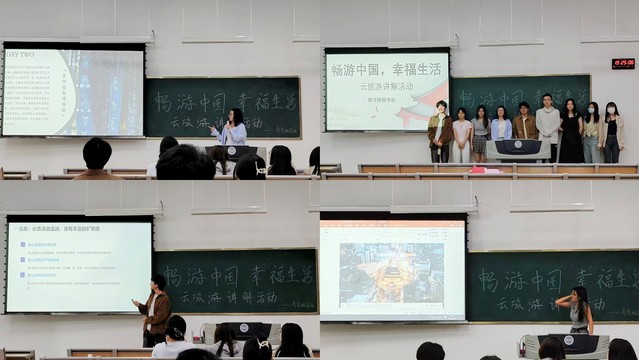 参加讲解活动的同学大都讲述的是自己亲身前往或自己从小生活的家乡,通过精心制作的PPT展示,倾情讲述他们个人的真实感受。从南通到宜兴,从洛阳到川西,从黄山到徐州……绚烂璀璨的文化与美景交融让现场观众领略了祖国各地优美的风土人情,名山大川,各色美食,让大家感受到中国的博大精深和自然之美。